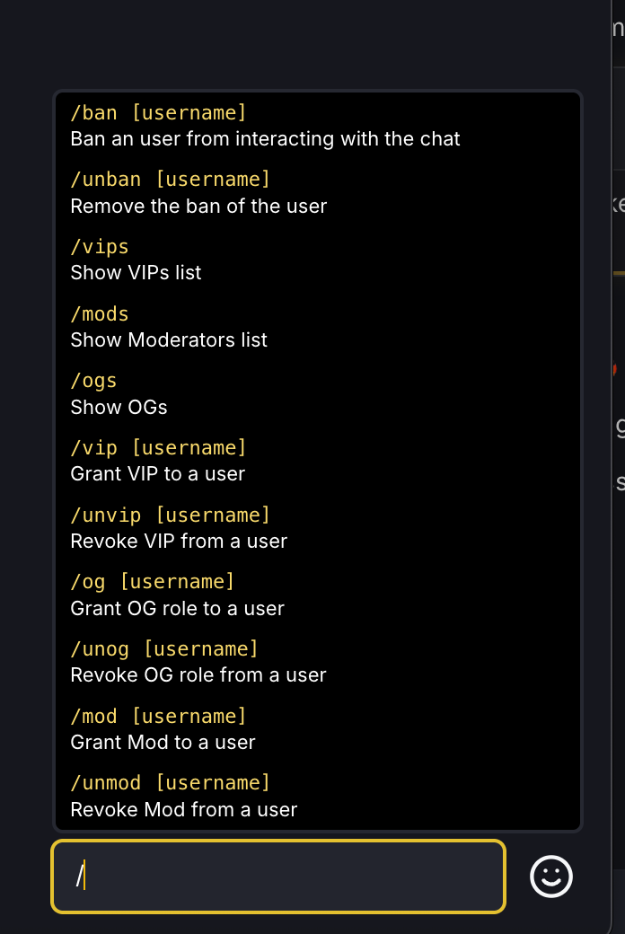 We’ve added a backslash commands tab (help panel) in chat and enabled the following commands: